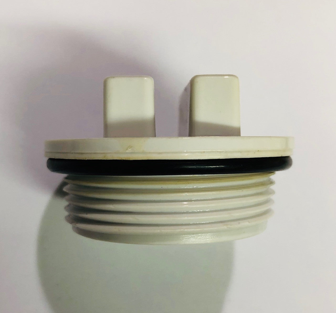 White threaded drain plug for Hayward Xstream cartridge filter. O-ring included.