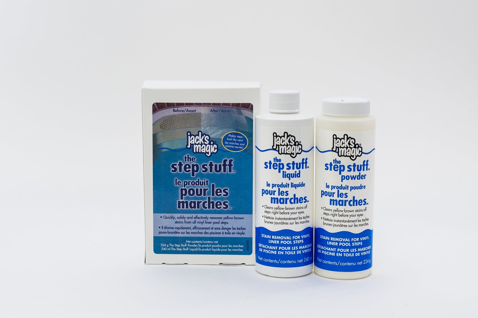 The Step Stuff safely and effectively removes most common stains off pool steps right before your eyes. This easy to use product is safe for all vinyl liner steps.